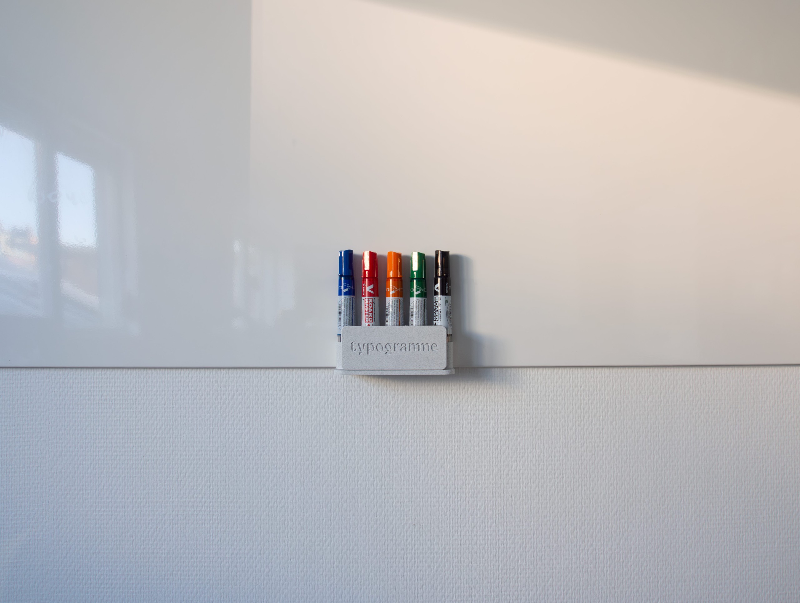 Parce que la culture d'entreprise commence par des petites choses, nous proposons un support pour marqueur et tampon de tableau blanc personnalisable.